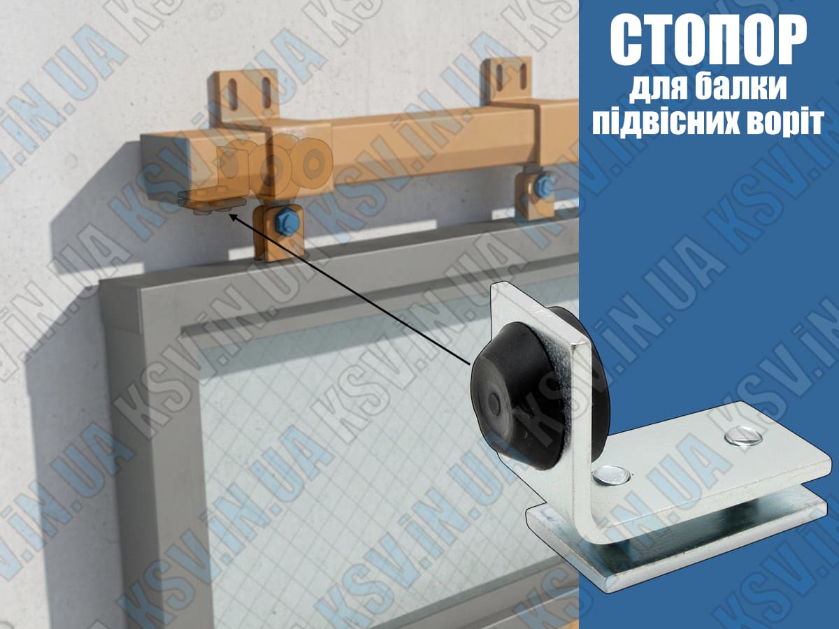 Стопор для балки підвісних воріт — це ключовий елемент безпеки. Дана деталь фурнітури виконує роль упору для роликових кареток, запобігаючи їх виходу за межі напрямної та забезпечуючи плавну зупинку полотна у заданих точках.