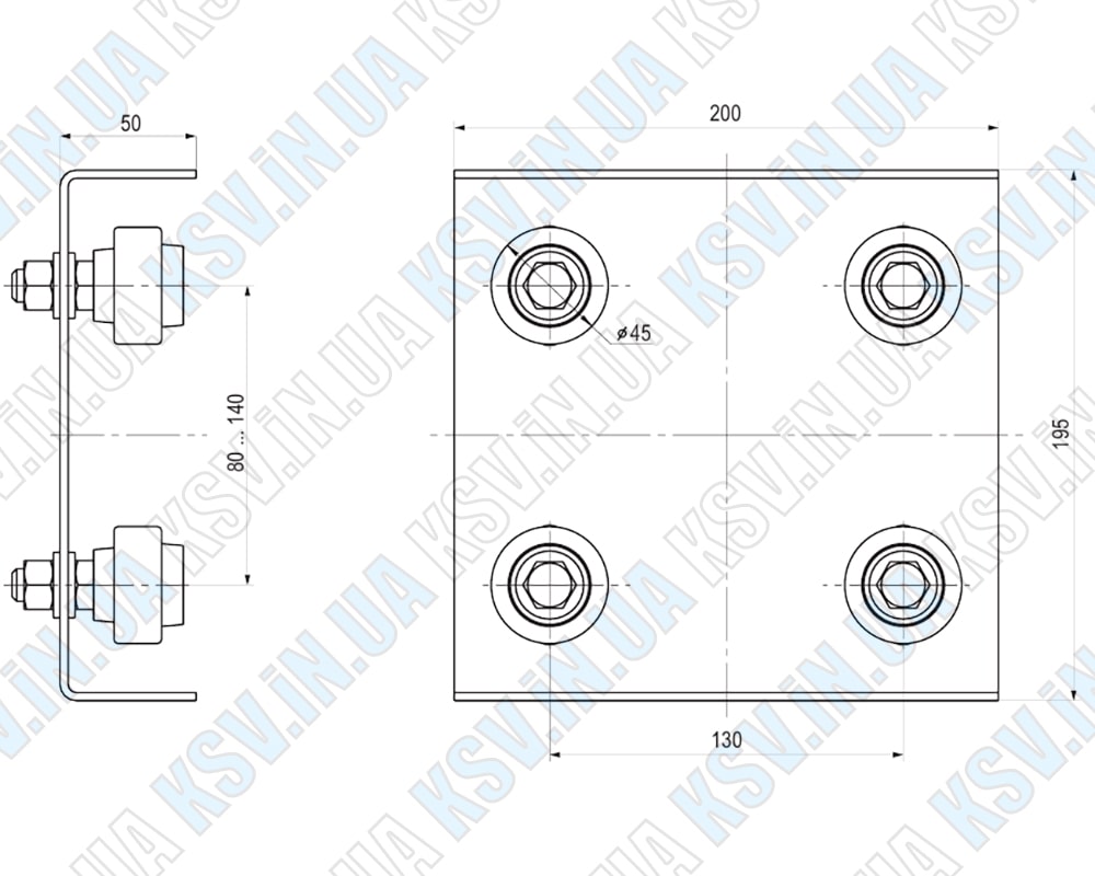 Направляющие ролики с кронштейном (4 ролика) для откатных ворот и сдвижных конструкций. Оцинкованный П-образный кронштейн, резиновые ролики Ø32 или Ø45 мм, нагрузка до 1200 кг. Обеспечивают точное и стабильное ведение створки. Комплект: кронштейн + 4 ролика.
