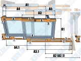 При движении основной секции (С1), вторая секция (С2) с помощью тросового механизма начинает движение следом. Система обеспечивает плавный ход и одновременную остановку створок в заданных точках.